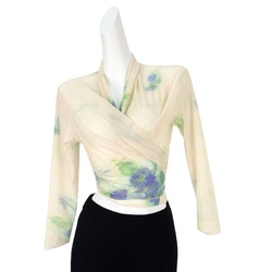 Maglietta retrò con stampa a girocollo a manica lunga Graffiti di nicchia maglietta da donna con fondo in Mesh Top sottile